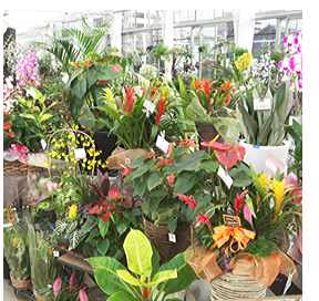 名古屋トップクラスの品揃えと販売面積にくわえ四季折々の植物から手に入りにくい植物まで取り揃えていますのでお客様がお探しのお花が見つかるかも知れません。 特に冬場でも温度管理をしている観葉温室には、ミリオンバンブー、マッサン、ポニーテールといった定番から他では取り扱っていないような商品を四季を問わずたくさん取り揃えております。